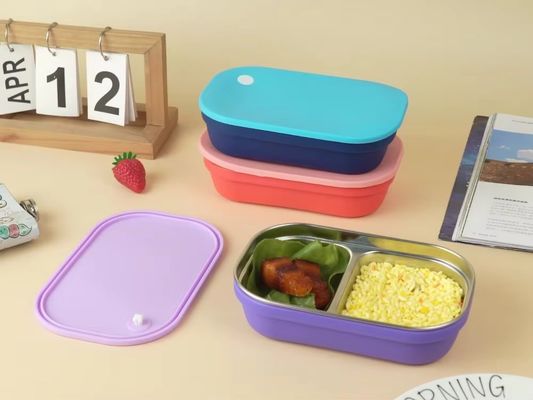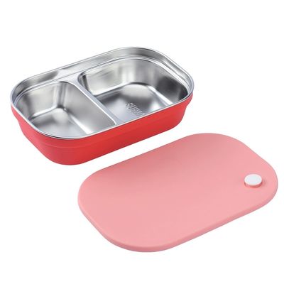 Leak-proof, dishwasher safe, easy to open & clean silicone & stainless steel lunch box for kids. Portable for daycare or travel.